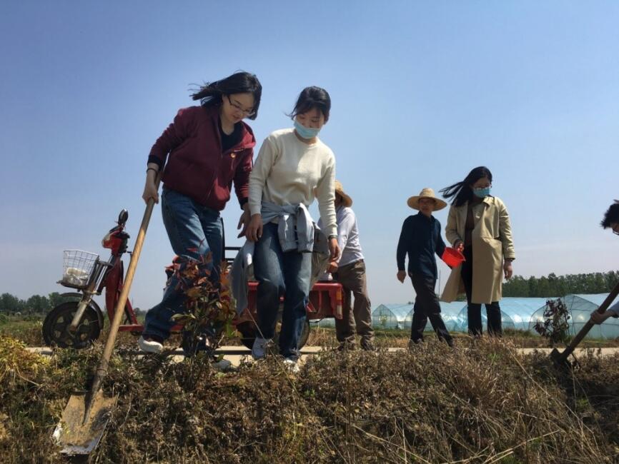 春風拂面、艷陽當空,團員青年們紛紛扛起鐵鍬、拎起水桶、提起樹苗,沿著村子里的水泥路邊親手植下一顆顆紅葉石楠。有的揮鍬鏟土、挖坑栽樹,有的扶苗填土、踩實澆水,每道工序都一絲不茍,四處都是熱火朝天的勞動場面。棵棵樹苗迎風而立,承載著大家扮美鄉(xiāng)村的美好愿望,展現(xiàn)了國貿青年的青春風貌。