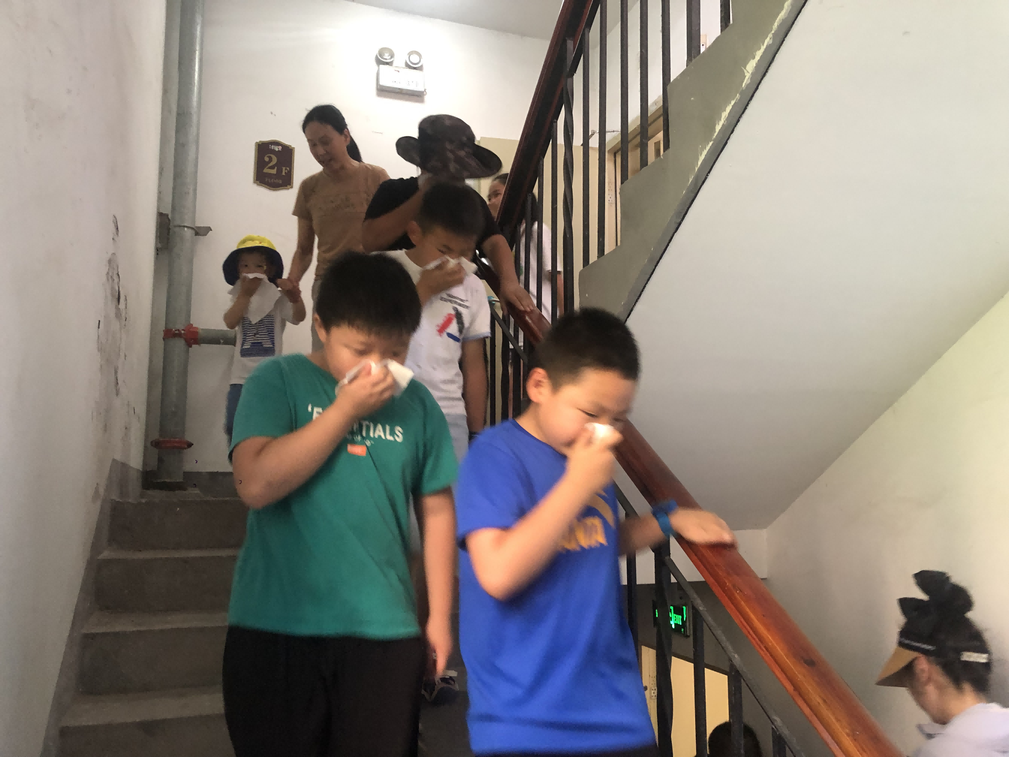 下午四點,警報拉響,小區消控室里傳來火災報警指令,值班人員發現火情后立即撥打“119”報警、上報信息并啟動消防應急預案。參與演練的小區業主及商戶等迅速進入緊急疏散狀態,用濕毛巾等捂住口鼻從消防樓梯有序撤出樓棟;物業疏散組、醫療組、設備組及警戒組按照既定分工緊張有序展開處突演練;地下車庫消防聯動系統立即啟動,消防廣播及報警聲響起,防火分區卷簾門自動關閉,排煙風機及消防泵全面啟動……大家分頭行動、各司其職,整個演練過程緊張有序、忙而不亂。